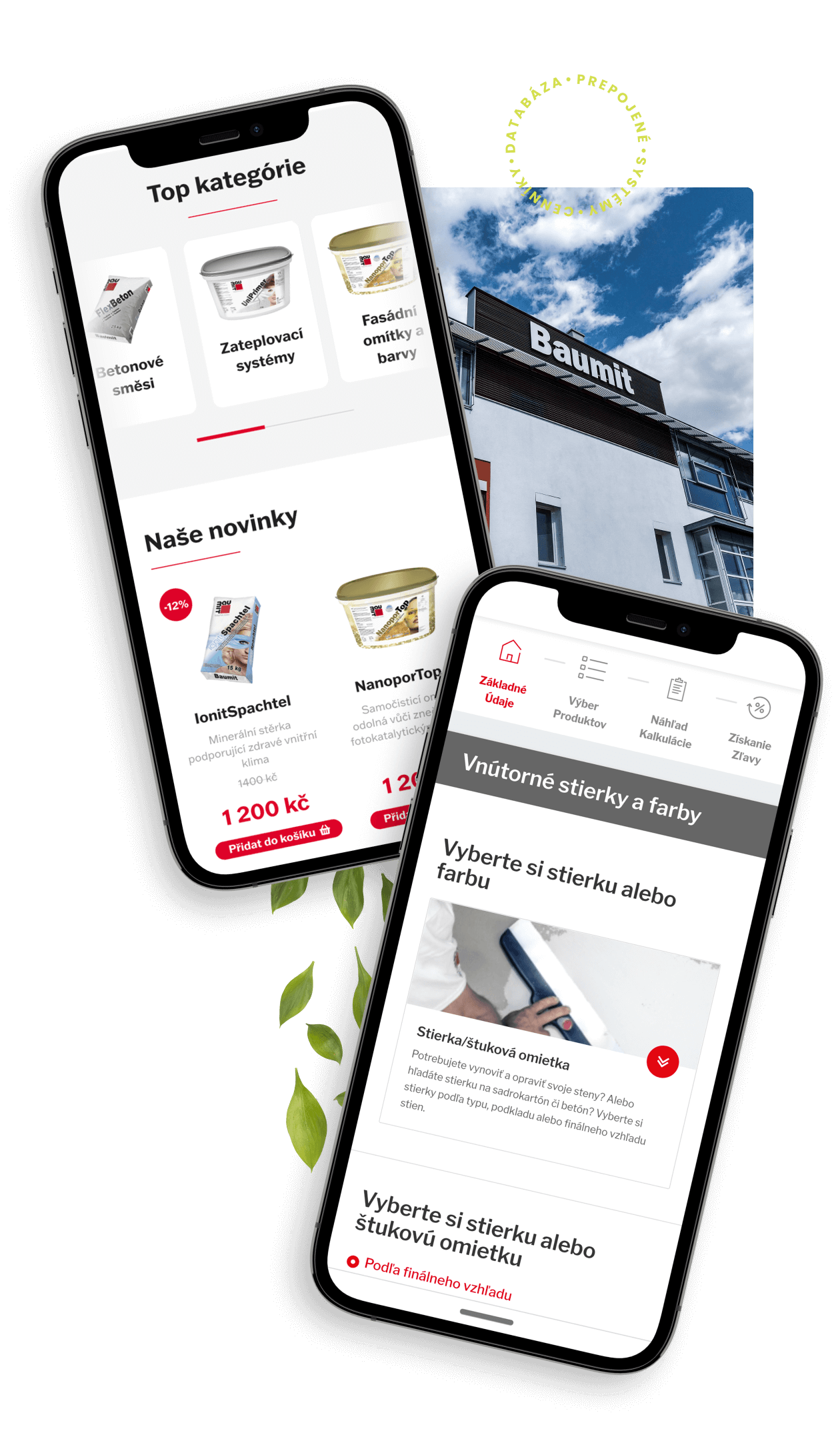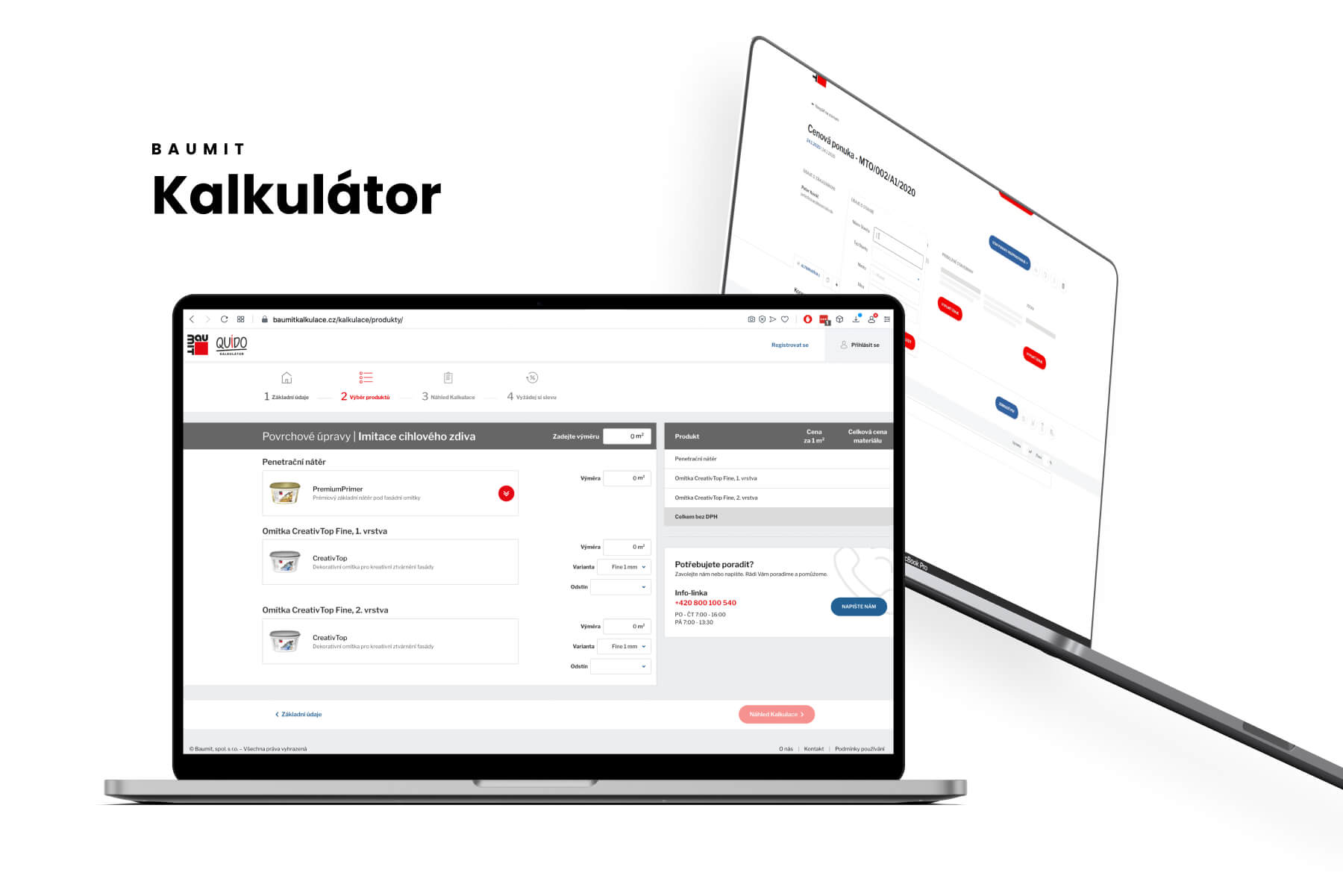Pre medzinárodne úspešnú spoločnosť BAUMIT sme vytvorili jedinečný online kalkulátor objednávok špeciálne na mieru s B2C a B2B využitím. Z pôvodne plánovaného jedného IT projektu sme vytvorili nástroj spájajúci interné objednávkové systémy obchodníkov spoločnosti a nástroj marketingových aktivít. Spoluprácu sme navyše rozšírili o úplne personalizovaný e-shop.