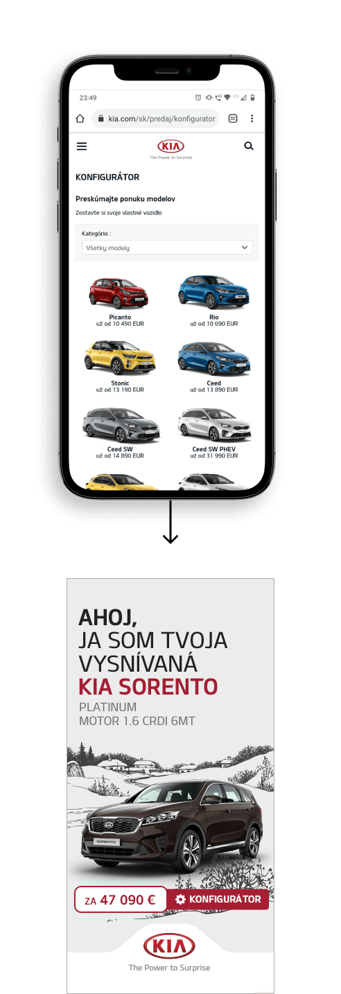 Banner tak môže vykresliť čo potrebuje, bez akýchkoľvek obmedzení šablónou – napríklad krásny animovaný banner podľa dizajn manuálu so skladovým vozidlom KIA, za použitia úplne štandardného HTML5. Môže tiež cez API dostať napríklad unikátny identifikátor vozidla aby banner vedel naživo overiť, či je ešte na sklade. Jednoducho to znamená mimoriadnu personalizáciu.