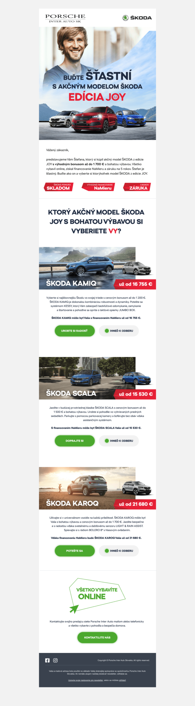 Našli sme pravý tone of voice, ktorý je vhodný pre Porsche Inter Auto Slovakia, s.r.o. Ale zároveň berie ohľad na rozdiely medzi značkami. Prispôsobili sme sa každej bez toho, aby trpel brandový záujem samotného Porsche Inter Auto Slovakia, s.r.o.